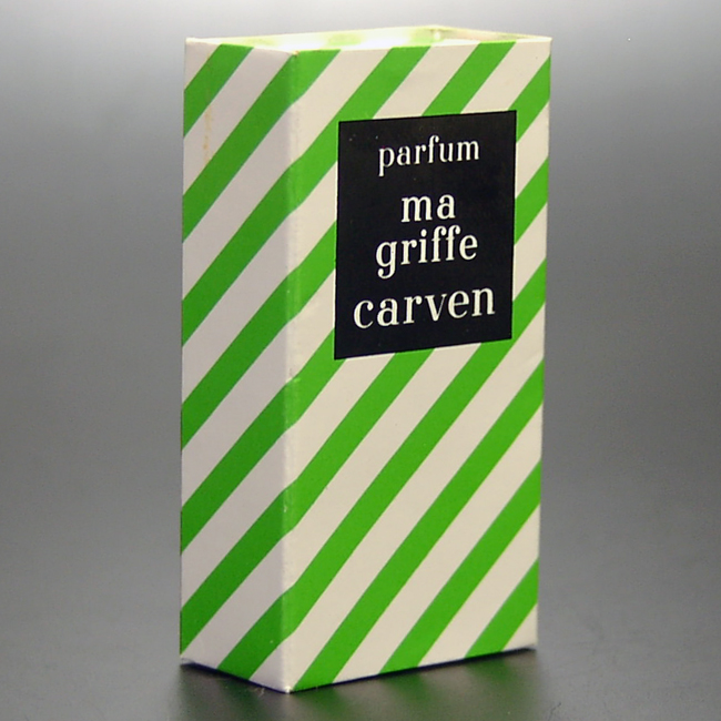 VINTAGE – 1/6 fl.oz perfume, gold metal sccrew-on lid, logo embossed on top, gold label w/ black imprint, 51 mm tall, w/ box