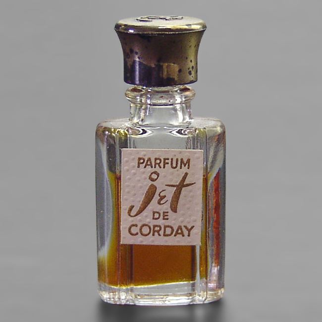 VINTAGE – 0.12 fl.oz perfume, gold screw-on lid (worn), logo embossed on top, white paper label with gold print, 45 mm tall